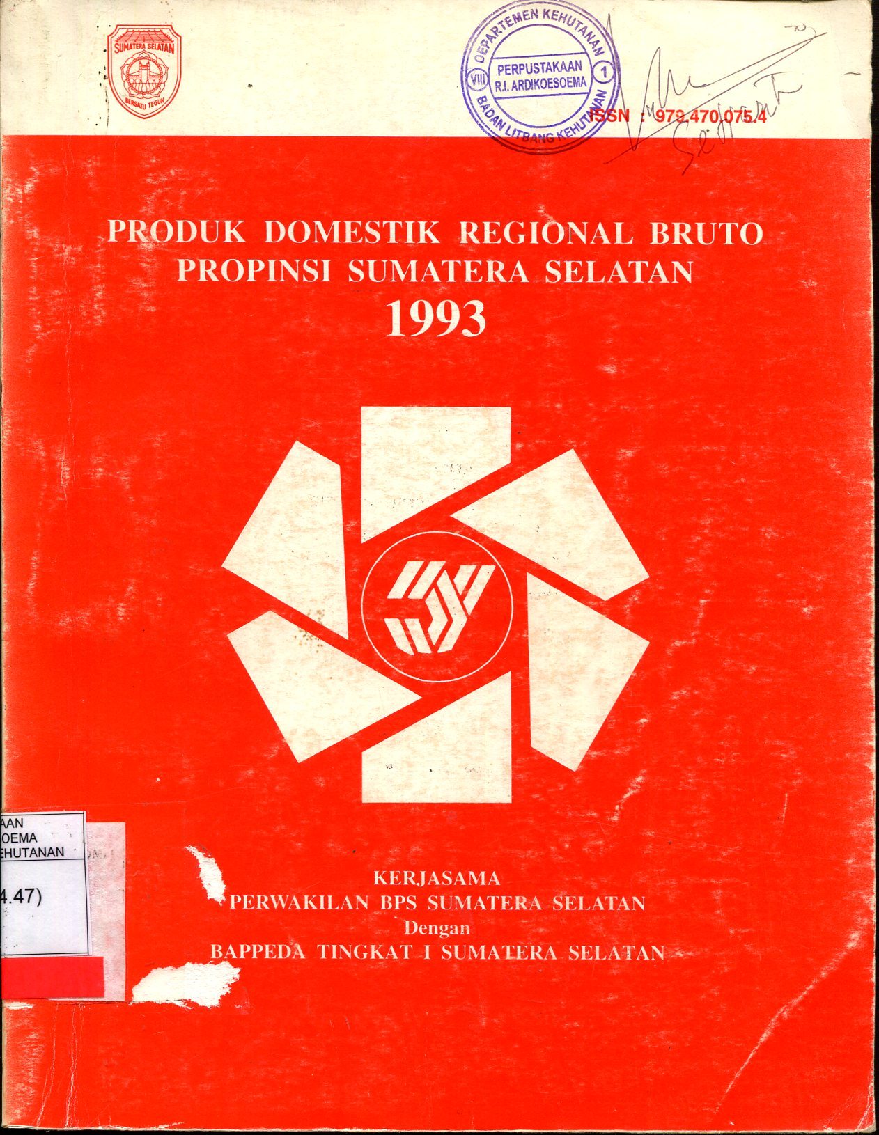 Produk domestik regional bruto propinsi Sumatera Selatan 1993 : BAPPEDA Sumatera Selatan