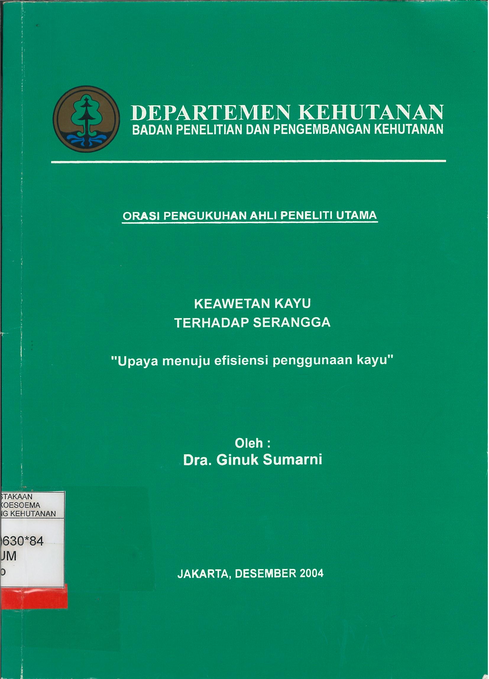 Orasi pengukuhan ahli peneliti utama : Keawetan kayu terhadap serangga upaya menuju efisiensi penggunaan kayu