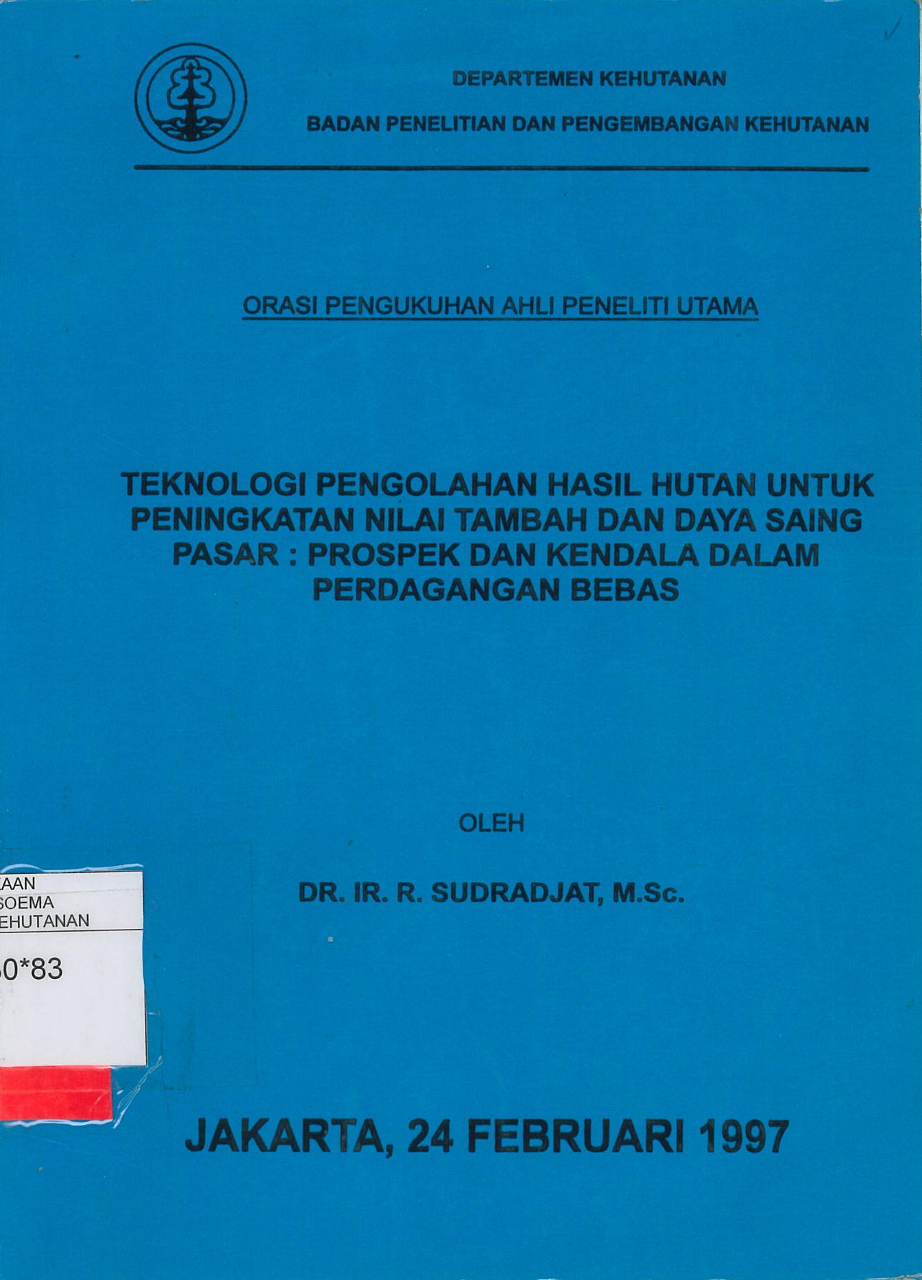 Orasi pengukuhan ahli peneliti utama : Teknologi pengolahan hasil hutan untuk peningkatan nilai tambah dan daya saing pasar, prospek dan kendala dalam perdagangan bebas