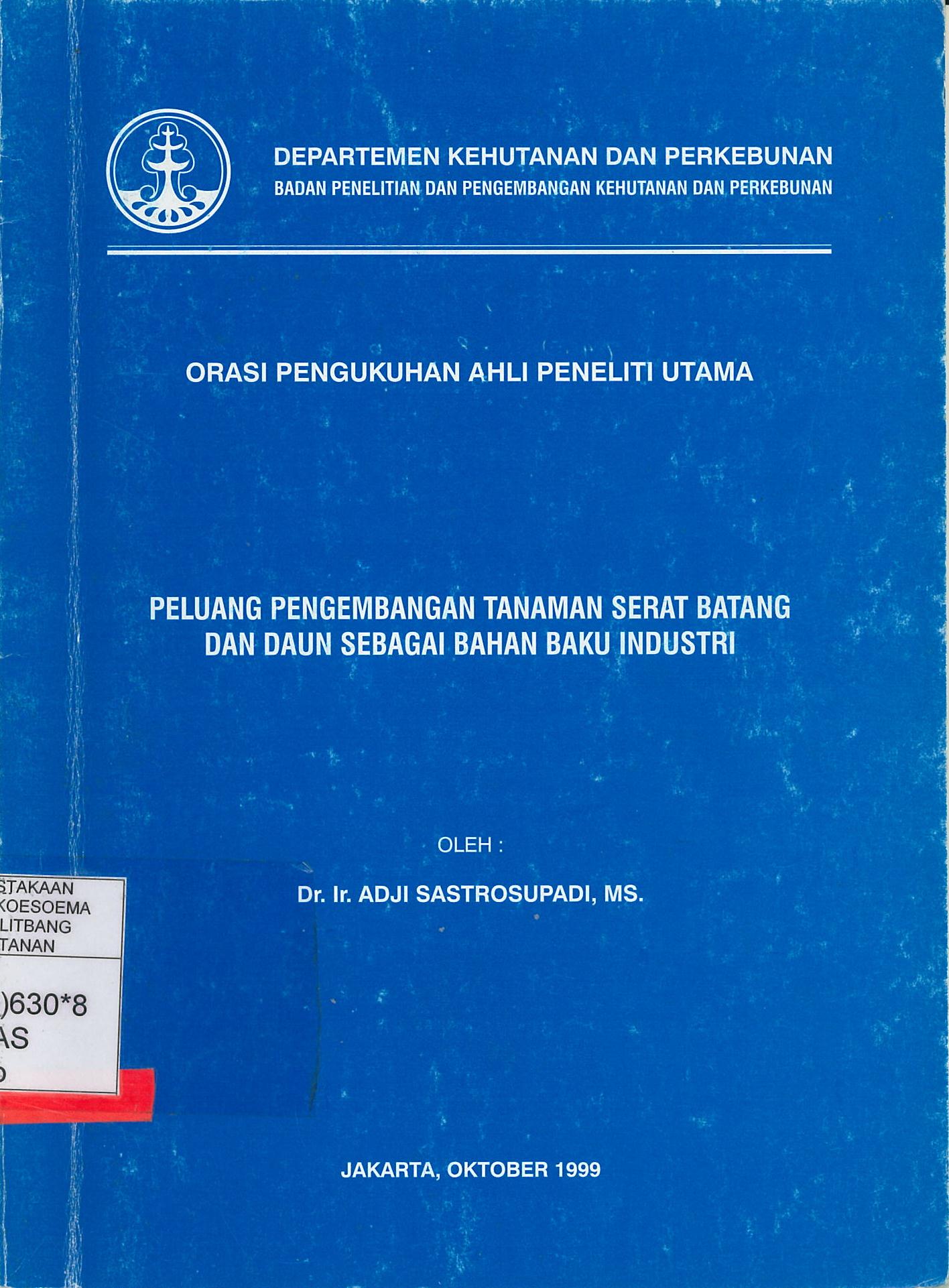 Orasi pengukuhan ahli peneliti utama : Peluang pengembangan tanaman serat batang dan daun sebagai bahan baku industri