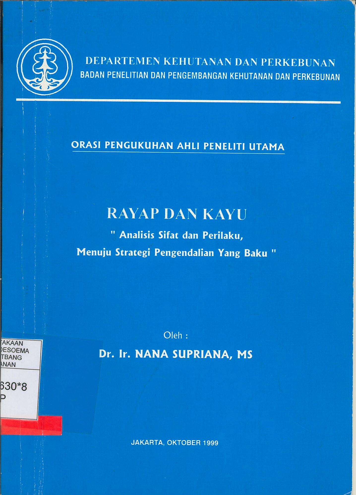 Orasi pengukuhan ahli peneliti utama : Rayap dan Kayu : Analisis sifat dan perilaku, menuju strategi pengendalian yang baku