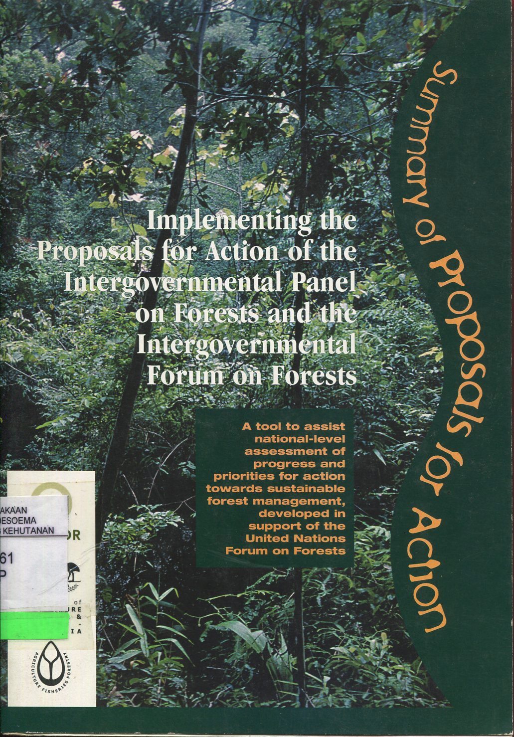 Implementing the proposals for action of the intergovernmental panel on forests and the intergovernmental panel on forest and the intergovernmental forum on forests