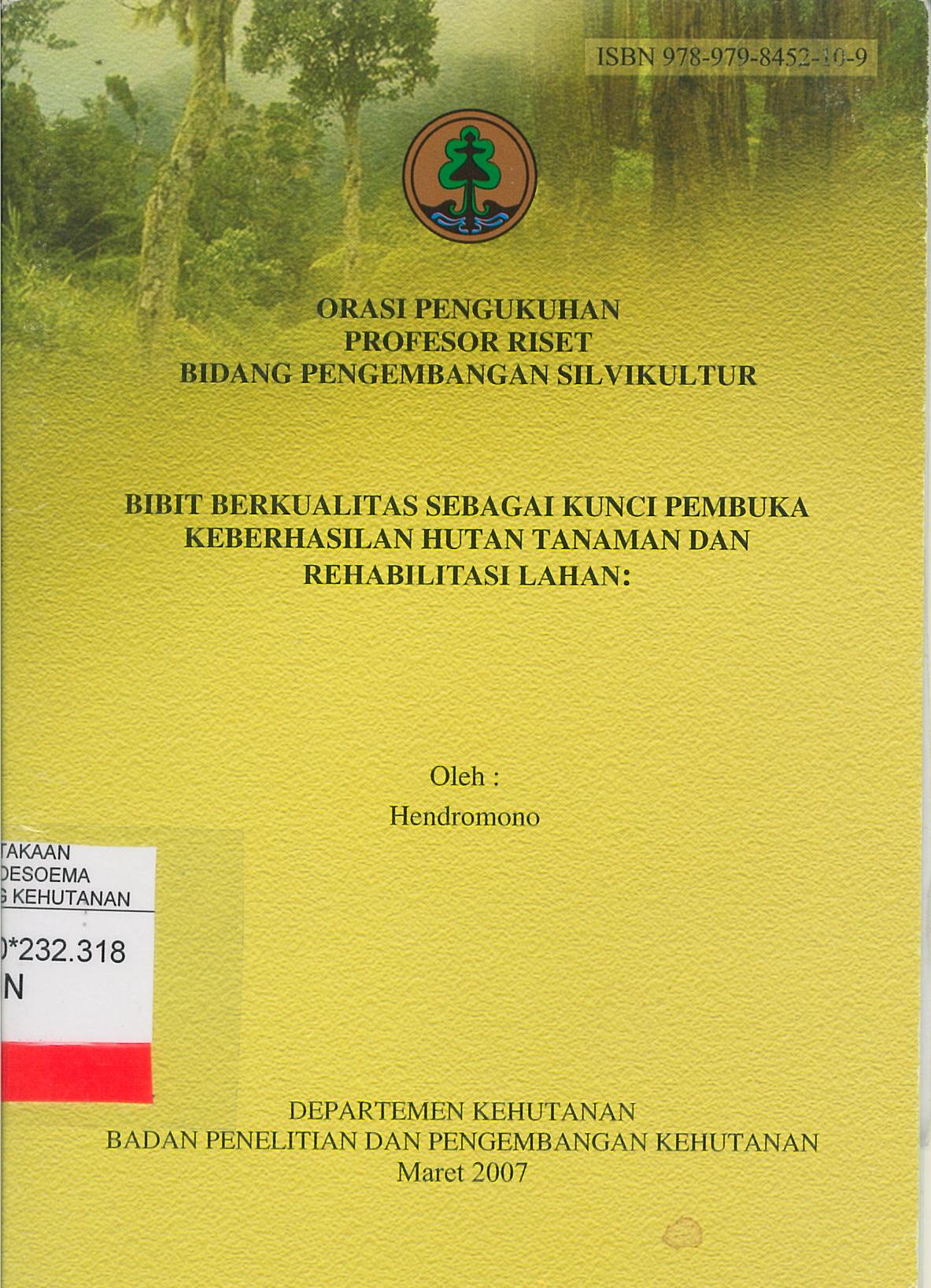 Orasi Pengukuhan Profesor Riset Bidang Pengembangan Silvikultur : Bibit Berkualitas Sebagai Kunci Pembuka Keberhasilan Hutan Tanaman dan Rehabilitasi Lahan