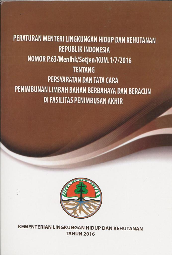 Peraturan Menteri LHK R.I No. P.63/Menlhk/Setjen/KUM.1/7/2016 tentang Persyaratan dan tata cara penimbunan limbah bahan berbahaya dan beracun di fasilitas penimbunan akhir