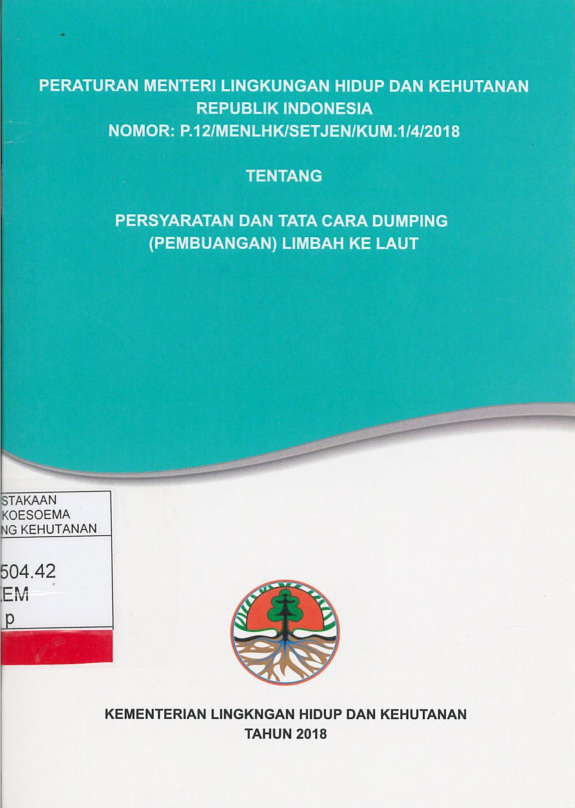 Peraturan Menteri LHK R.I No. P.12/MENLHK/SETJEN/KUM.1/4/2018 tentang Persyaratan dan tata cara dumping (pembuangan) limbah ke laut
