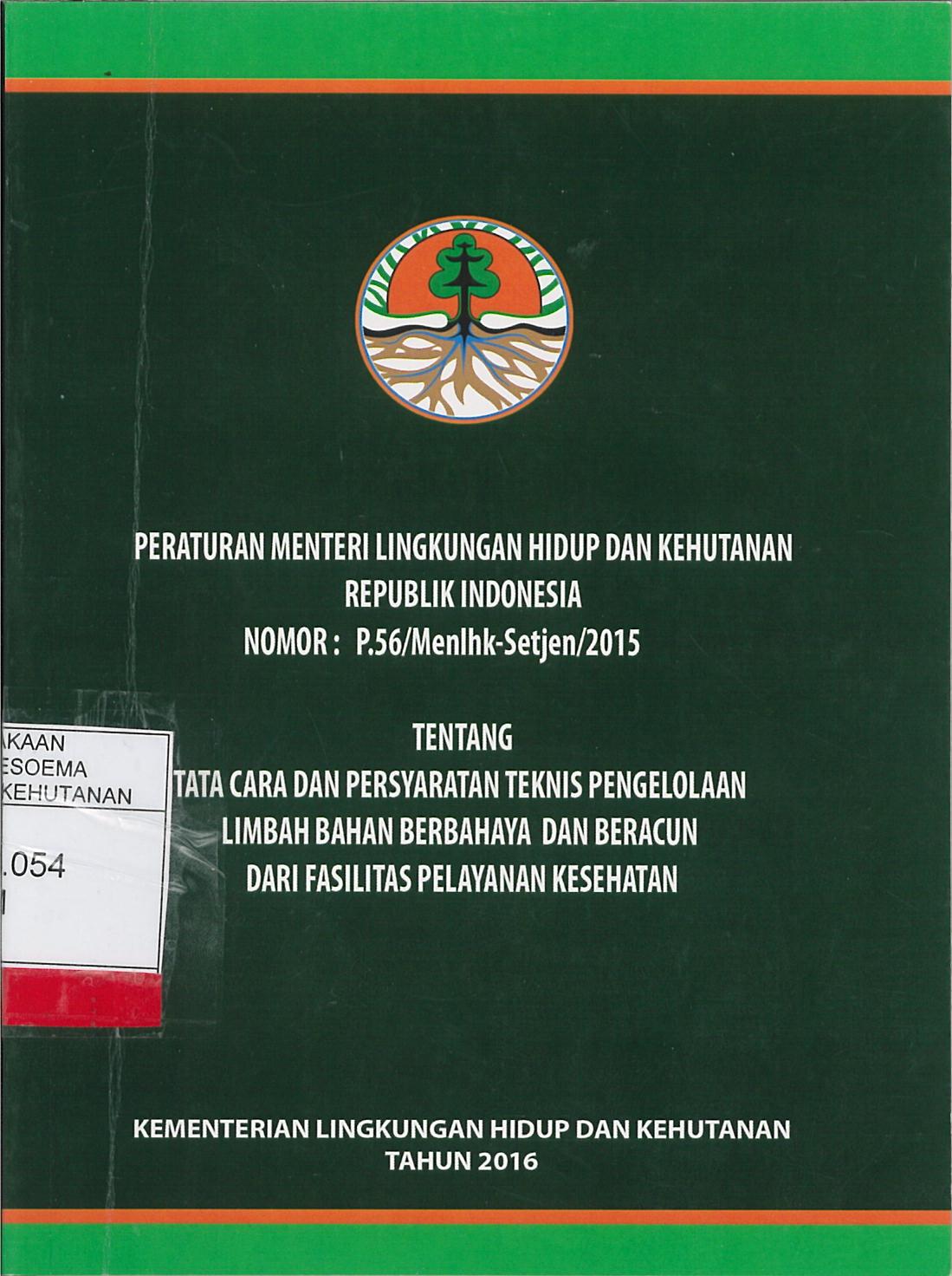 Peraturan Menteri LHK R.I No. 56/Menlhk-Setjen/2015 tentang Tata cara dan persyaratan teknis pengelolaan limbah bahan berbahaya dan beracun dari fasilitas pelayanan kesehatan
