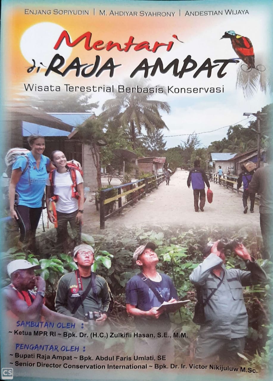 Buku ini mengeksplore potensi wisata daratan (teristerial) dikawasan Raja Ampat yang berbasis konservasi, yaitu wisata budaya, adat istiadat, desa konservasi, pengelolaan kawasan konservasi, wisata pengamatan burung (bird watching), ulasan cendrawash dll. Selain itu dipaparkan juga pengalaman petugas dilapangan dalam upaya menjaga keutuhan Kawasan konservasi.
