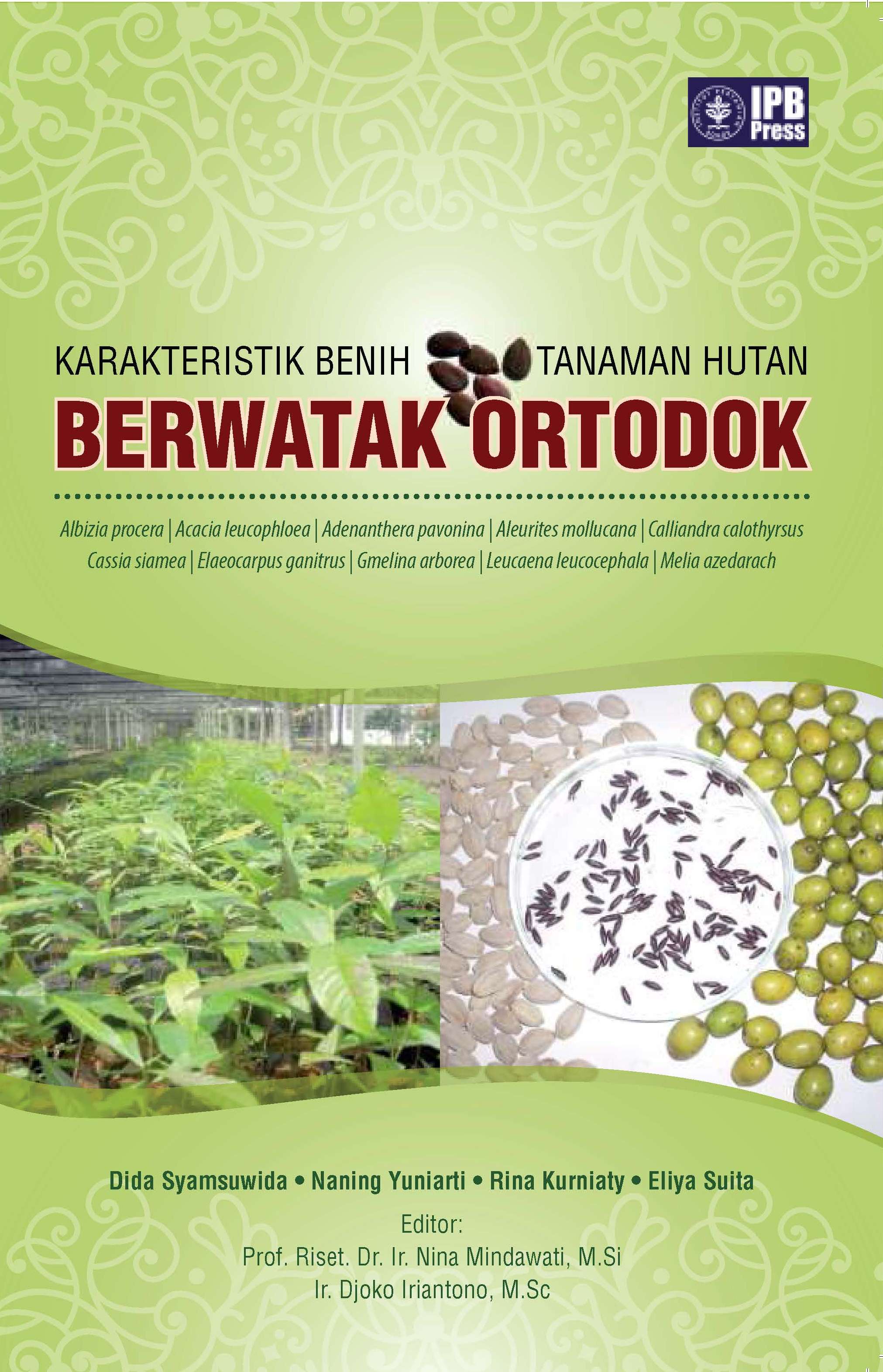 Buku ini menjelaskan tentang 10 (sepuluh) jenis tanaman hutan yang menghasilkan benih dengan karakteristik ortodok. diuraikan secara komprehensif tentang gambaran umum jenis tanaman hutan yang memiliki benih ortodok, karakteristik benih berwatak ortodok mulai dari fenologi, pembungaan dan potensi produksi benih, ciri isik, isiologis dan kandungan biokimia, daya simpan, serta dormansi benih. Secara khusus dibuat bab tentang penanganan sepuluh jenis benih ortodok, yaitu, Weru, Pilang, Saga, Kemiri, Johar, Ganitri, Gmelina, Lamtoro, dan Mindi, yang disertai gambar-gambar yang menarik.
