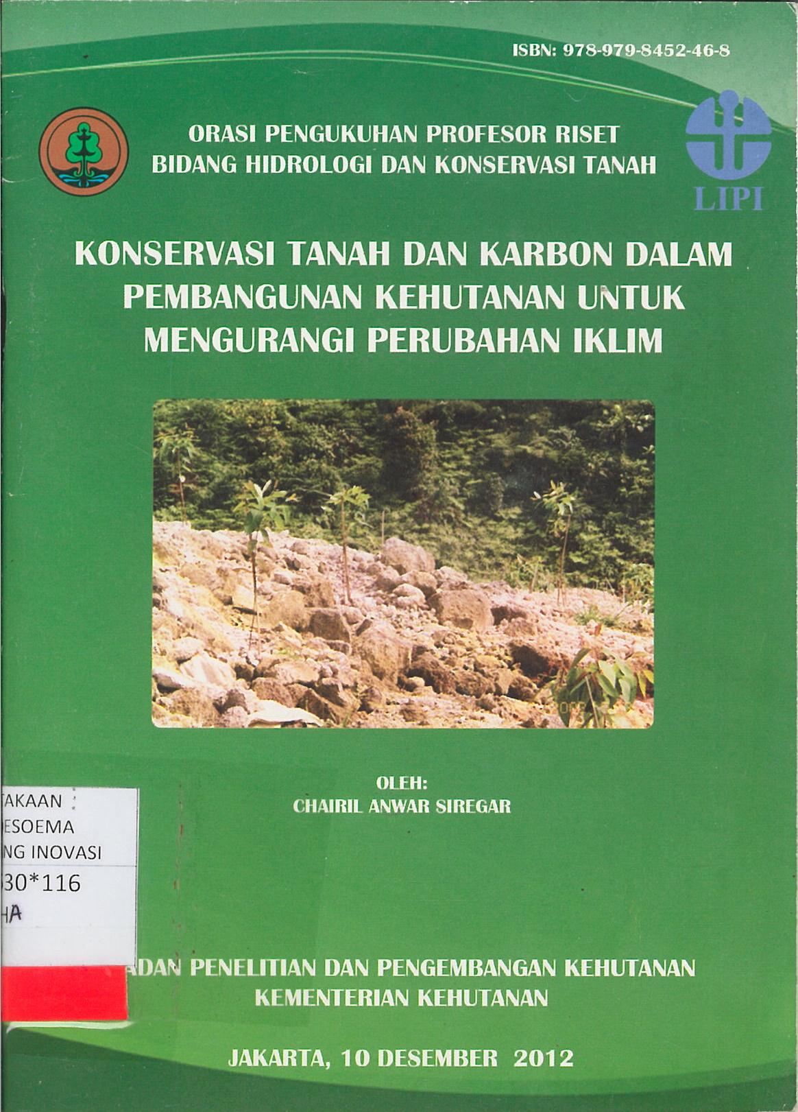 orasi pengukuhan profesor riset bidang hidrologi dan konservasi tanah : Konservasi tanah dan karbon dalam pembangunan kehutanan untuk mengurangi perubahan iklim