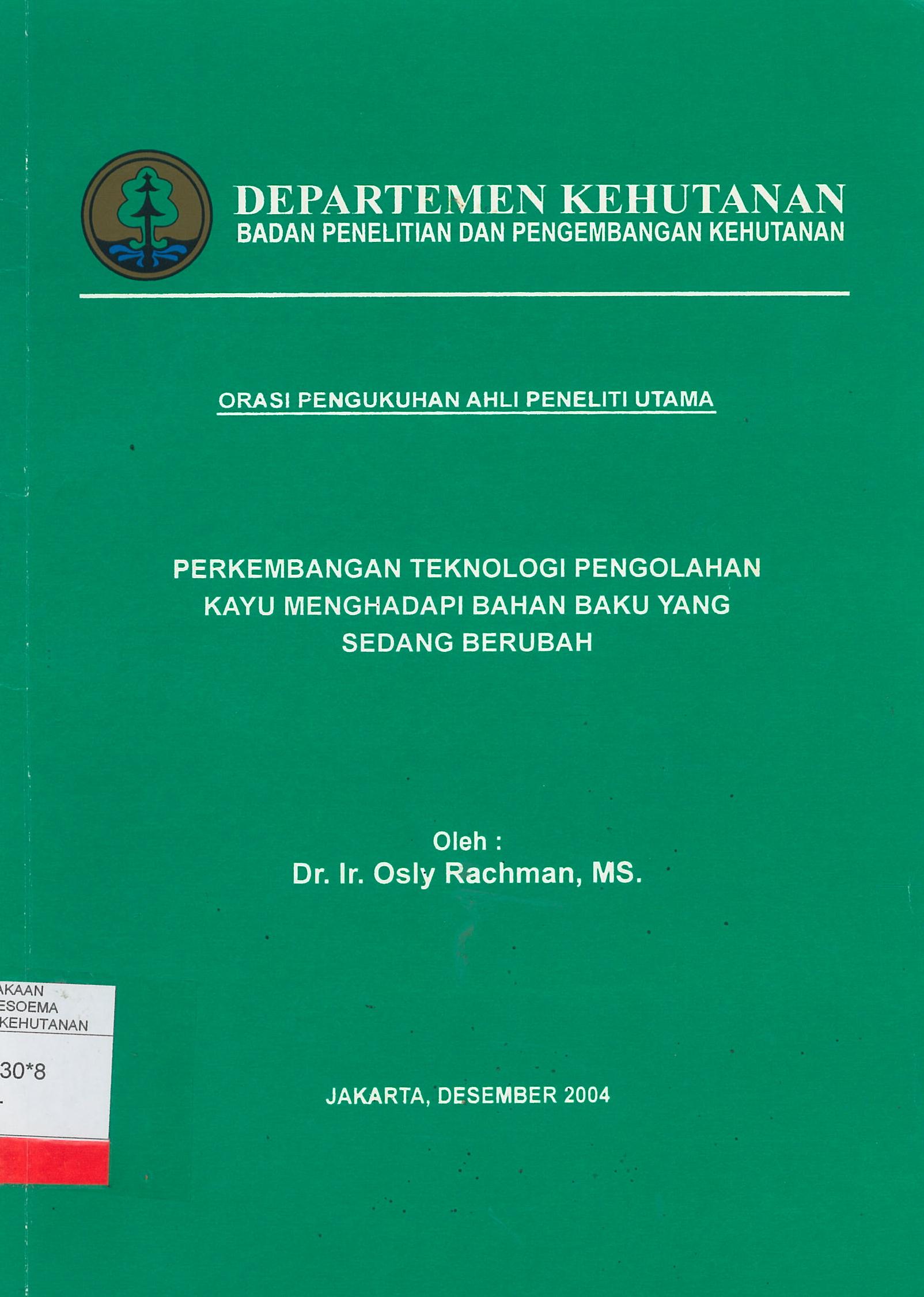 Orasi pengukuhan ahli peneliti utama: perkembangan teknologi pengolahan kayu menghadapi bahan baku yang berubah