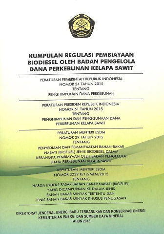 Kumpulan regulasi pembiayaan biodisel oleh Badan Pengelola Dana Perkebunan Kelapa Sawit