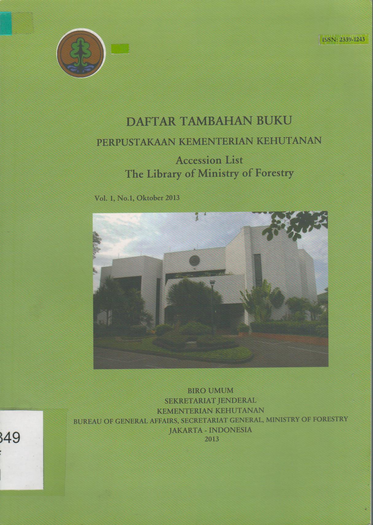 Daftar tambahan buku Perpustakaan Kementerian Kehutanan = Accesion list the Library of Forestry Vol. 1, No. 1, Oktober 2013