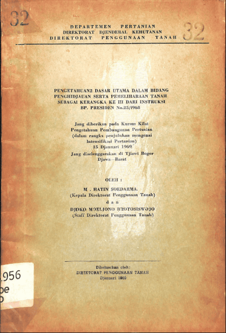 Pengetahuan2 Dasar Utama dalam Bidang Penghidjauan serta Pemeliharaan Tanah sebagai Kerangka ke III dari Instruksi BP. Presiden No.25/1968
