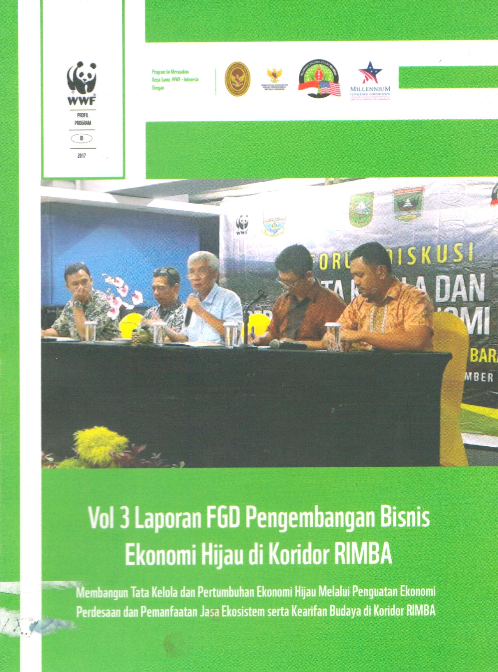 Laporan FGD Pengembangan Bisnis Ekonomi Hijau di Koridor RIMBA : vol 3 : membangun tata kelola dan pertumbuhan ekonomi hijau melalui penguatan ekonomi perdesaan dan pemanfaatan jasa ekosistem serta kearifan budaya di koridor RIMBA