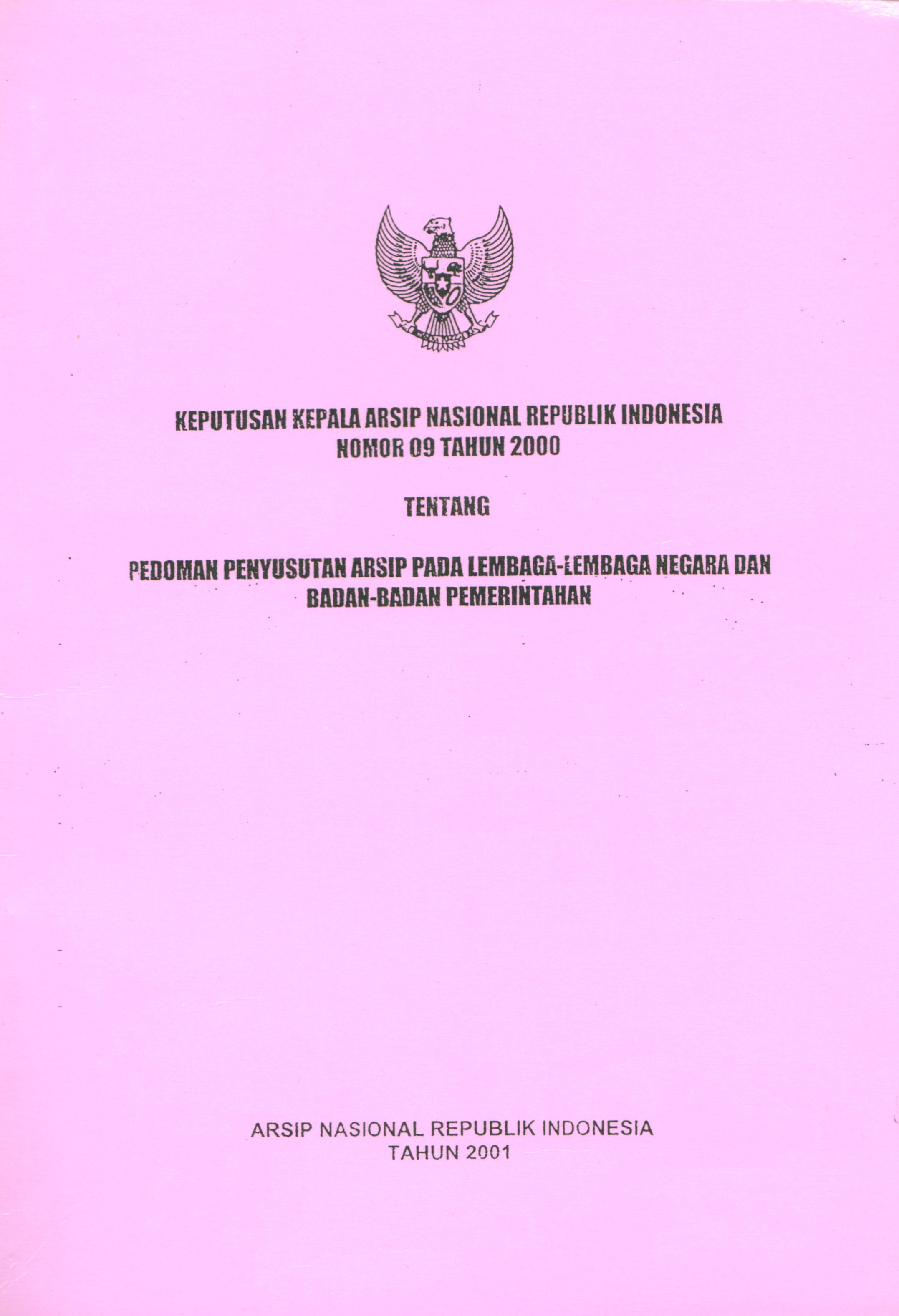 Keputusan Kepala Arsip Nasional Republik Indonesia Nomor 09 Tahun 2000 tentang Pedoman Penyusutan Arsip pada Lembaga-lembaga Negara dan Badan-badan Pemerintah