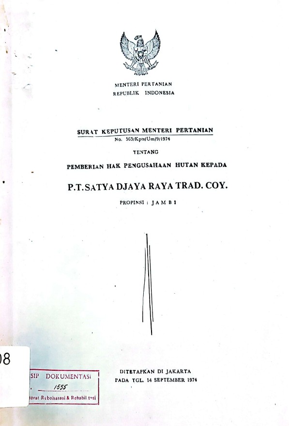 Concession agreement between the Department of Agriculture and PT Satya Djaja Raja ...& Toyo Menka Kaisha ... East Kalimantan
