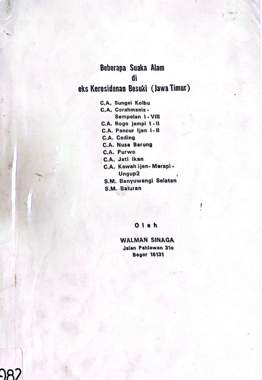 Beberapa suaka alam di eks. Keresidenan Besuki (Jawa timur): cagar alam sungai Kolbu, cagar alam Corahmanis - sempolan ...