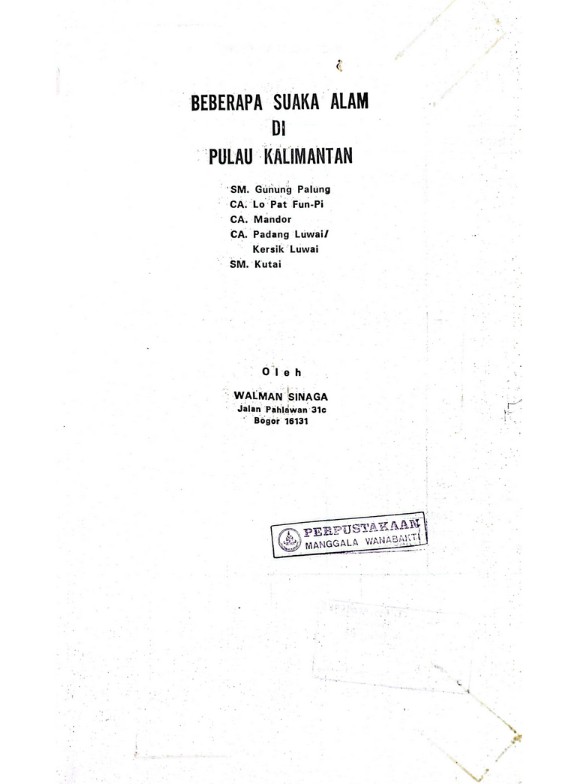 Beberapa suaka alam di pulau Kalimantan: suaka margasatwa Gunung Palung alam Lo Pat fun-pi, cagar alam Mandor, cagar alam ..