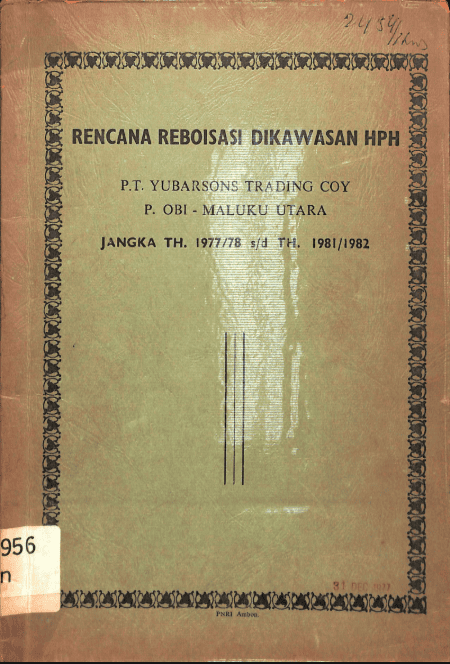 Rencana Reboisasi di Kawasan HPH P.T. Yubarsons Trading Coy P. Obi - Maluku Utara Jangka TH. 1977/78 s/d TH. 1981/1982
