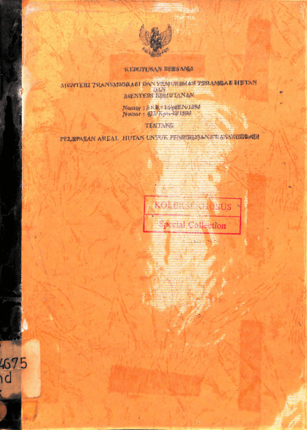 Keputusan Bersama Menteri Transmigrasi dan Pemukiman Perambah Hutan dan Menteri Kehutanan Nomor: SKB.126/MEN/1994 Nomor 422/Kpts-II/1994 tentang Pelepasan Areal Hutan utuk Pemukiman Transmigrasi