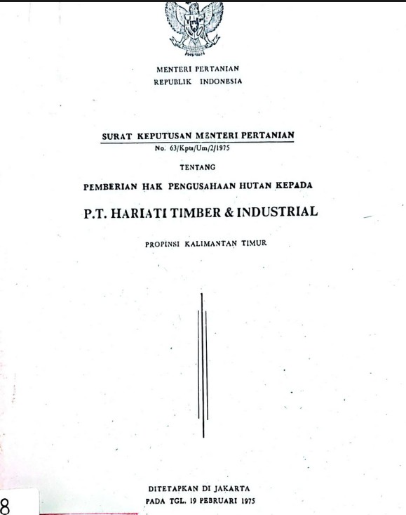 Surat keputusan Menteri Pertanian ... tentang pemberian hak pengusahaan hutan kepada PT Hariati Timber & Industrial: Kaltim