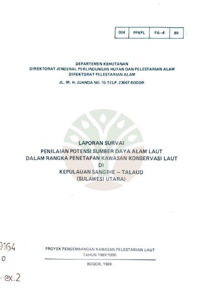 Laporan survai penilaian potensi sumber daya alam laut: dalam rangka penetapan kawasan konservasi laut di Kep. Sangihe ...