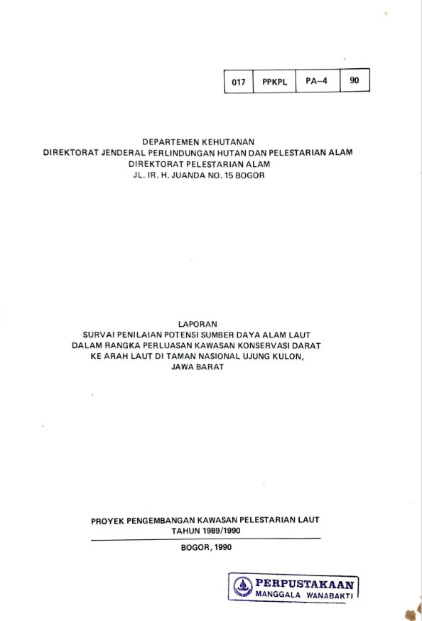 Laporan survai penilaian potensi sumber daya alam laut dalam rangka perluasan kawasan konservasi darat ... Jawa Barat