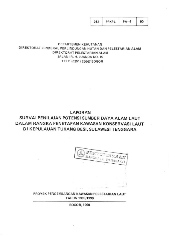 Laporan survai penilaian potensi sumber daya alam laut: ... di Kepulauan Tukang Besi, Sulawesi Tenggara