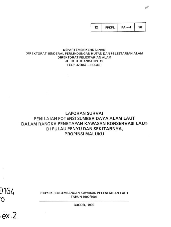 Laporan survai penilaian potensi sumberdaya alam laut dalam rangka ... di Pulau Penyu dan sekitarnnya Propinsi Maluku