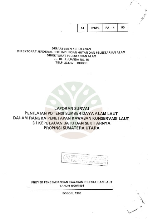 Laporan survai penilaian potensi sumber daya alam laut dalam rangka ... konservasi laut di Kep. Batu & sekitarnya Prop. Sumut