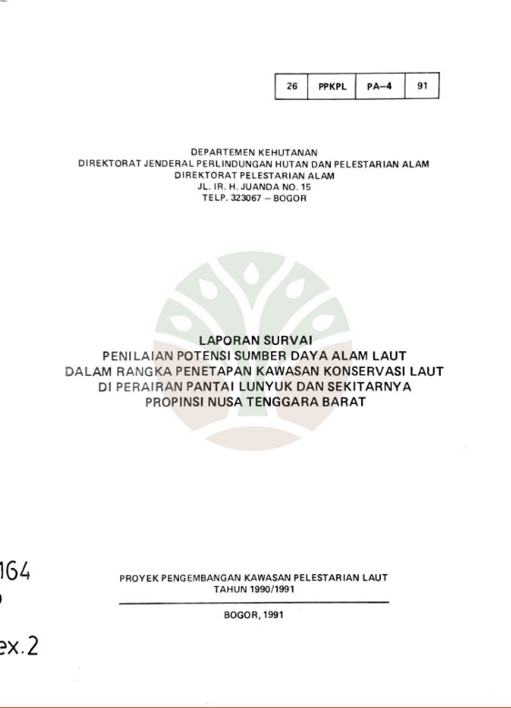 Laporan survai penilaian potensi SDA laut dalam rangka penetapan kawasan konservasi laut di Perairan pantai Lunyuk dan sekitarnya Propinsi Nusa Tenggara Barat