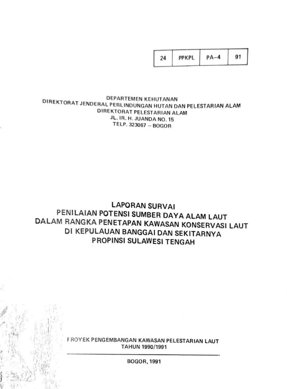 Laporan survai penilaian potensi sumber daya alam laut dalam rangka ... di Kepulauan Banggai dan sekitarnya Prop. Sulteng