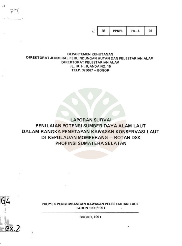 Laporan survai penilaian potensi sumber daya alam laut dalam rangka ... di Kepulauan Momperang - Rotan dsk Propinsi Sumsel