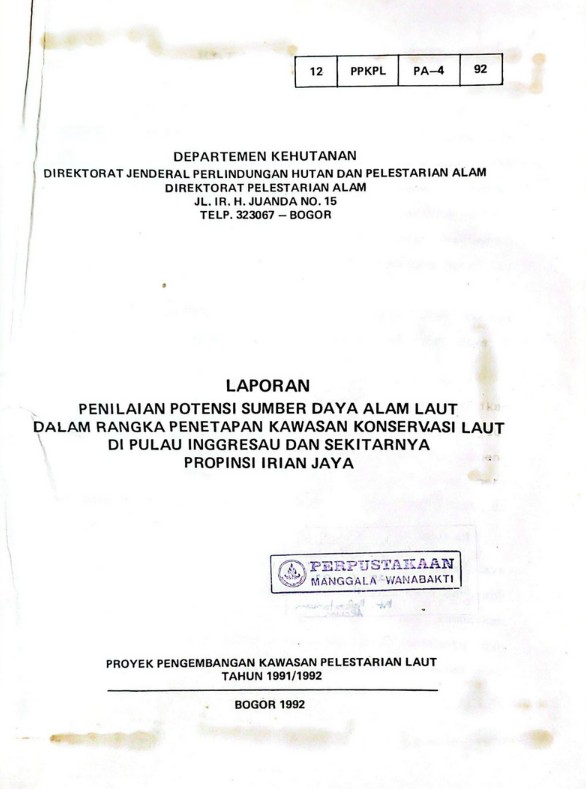 Laporan penilaian potensi SDA dalam rangka penetapan kawasan konservasi laut di P. Inggresau ds. prop. Irian Jaya