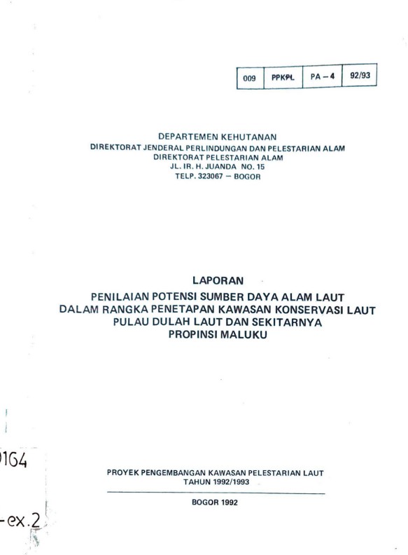 Laporan penilaian potensi SDA laut dalam rangka penetapan kawasan konservasi laut Pulau Dulah Laut ds. Propinsi Maluku